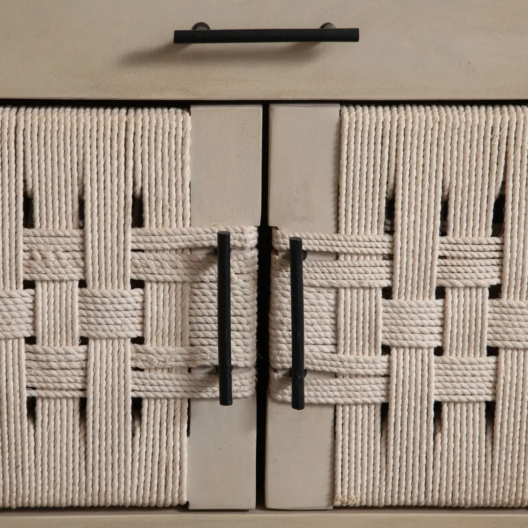 Airy woven rope accents create a textured, visual focal point that complements natural or neutral decor schemes