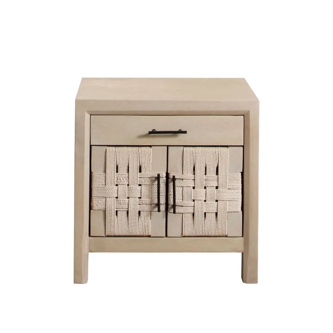 Bring a touch of coastal elegance and practical storage to your bedroom or living room with the Palm Collection nightstand solid wood by Diamond Sofa. Crafted from durable solid Mango Wood and finished in a warm natural tone, this end table combines timeless style with functional design. The woven rope door fronts offer a breezy, coastal-inspired aesthetic, perfectly suited for contemporary and modern interiors.