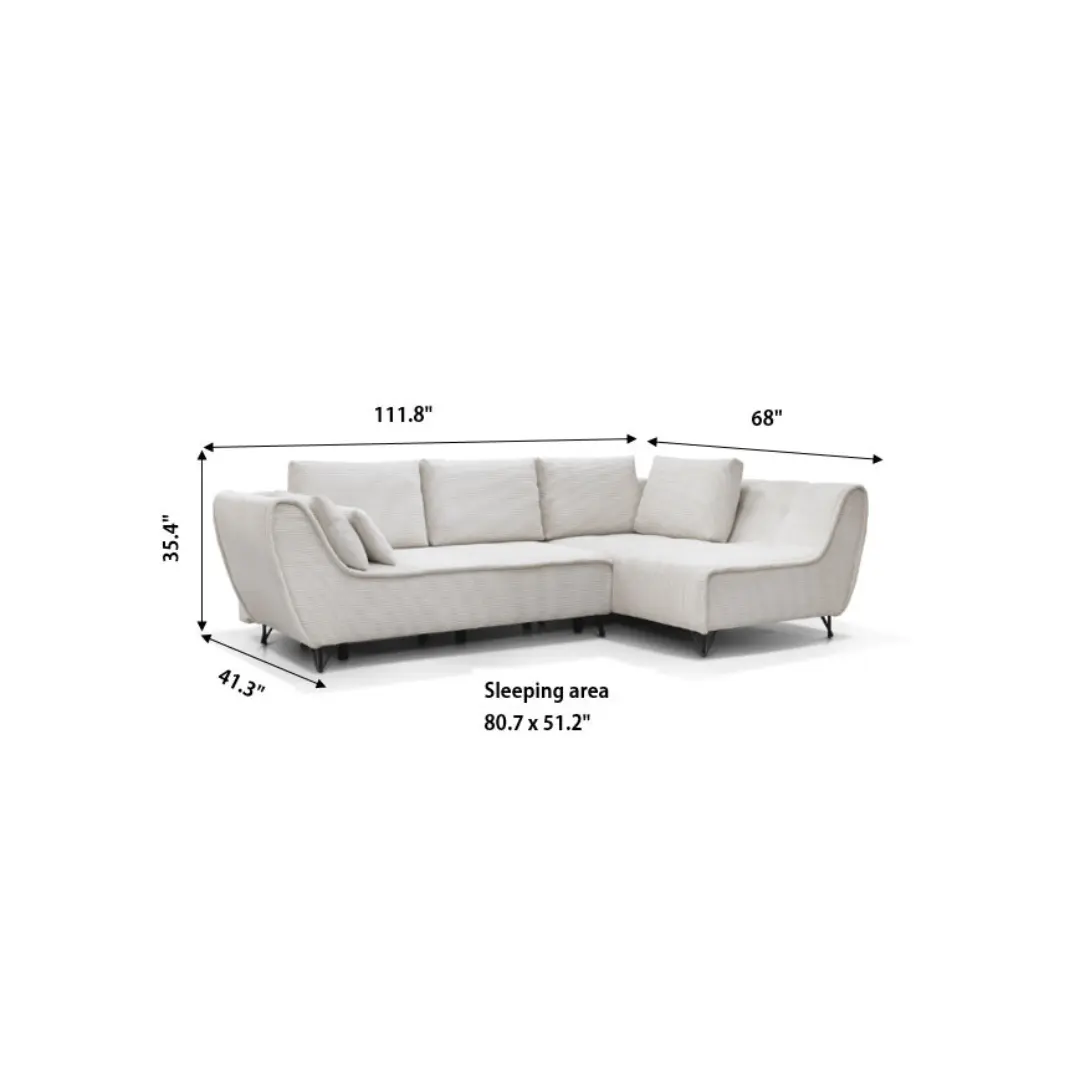 Discover modern comfort with this beautifully designed fabric sectional, crafted to elevate any interior with its clean lines and inviting feel. Upholstered in premium Sigma 4 Pearl fabric, it blends softness and durability, while the black legs add a bold contemporary touch. Designed for versatility, it also features a convenient sleeping area, making it perfect for both relaxing and hosting overnight guests.