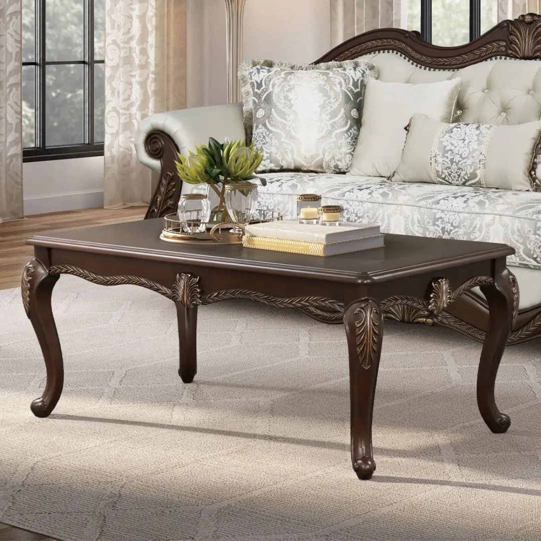 Ebony Black & Gold Victorian Coffee Table HD-328B By Homey Design