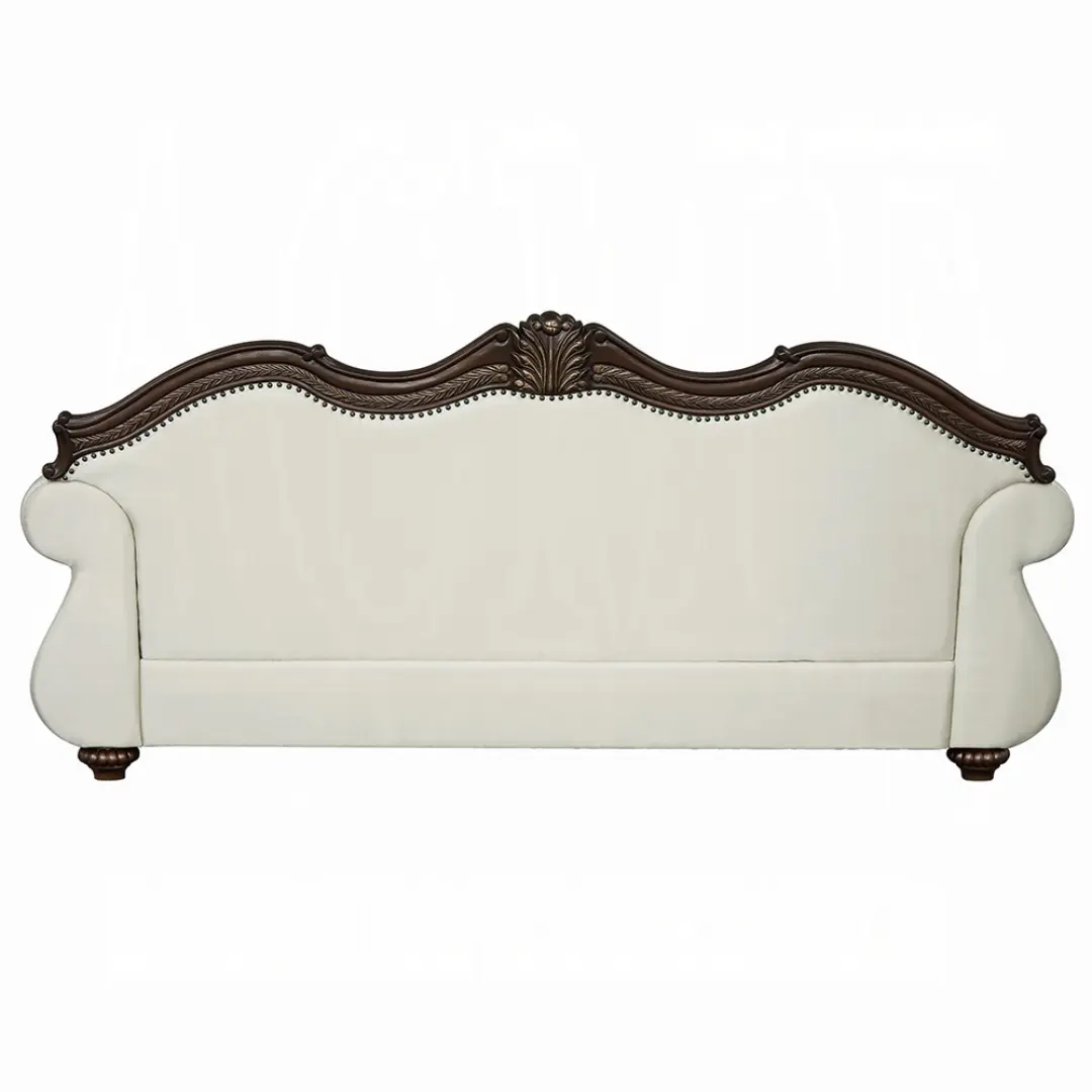 Elevate your living space with the timeless elegance of the Pierce Sofa. Upholstered in a soft beige fabric, this sofa combines classic design with modern comfort. Featuring a button-tufted tight back and loose seat cushions with pocket coil construction, it offers exceptional support and plush relaxation. The wooden inner frame ensures durability, while the intricately carved floral trim on the apron and legs adds a sophisticated touch.