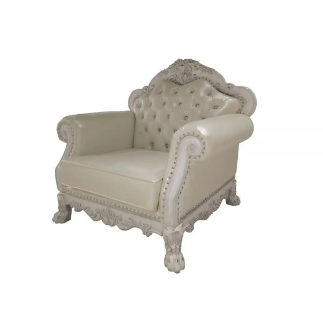 Synthetic Leather & Bone White Finish Dresden Chair W/2 Pillows LV01690 By ACME