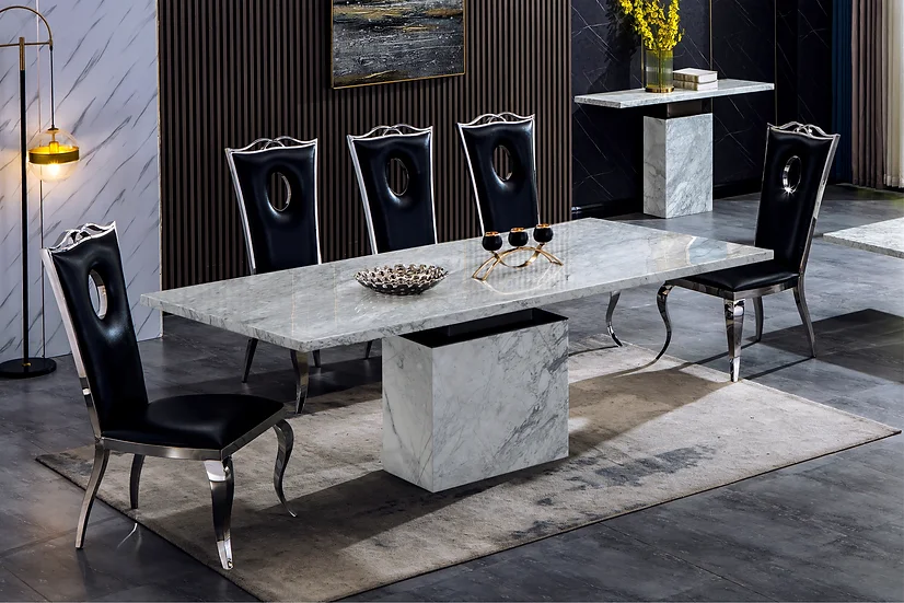 Experience sophisticated modern living with the Black Marble Dining Table RDT306BMW by Artisan Furniture — a statement piece crafted to blend bold aesthetics with enduring craftsmanship. Designed for discerning homeowners and design professionals, this rectangular dining table redefines luxury dining through a harmonious balance of materials, form, and function.