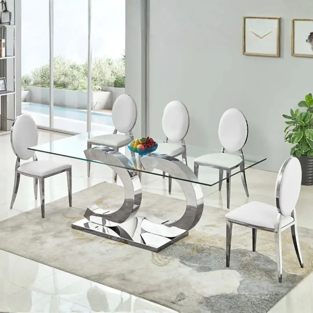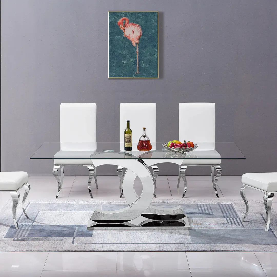 Redefine your dining experience with the Silver Dining Table Tempered Glass RDT313S by Artisan Furniture — a modern statement piece where premium craftsmanship meets refined luxury. Designed to impress, this sleek, rectangular dining table features a 12mm clear tempered glass top that effortlessly balances durability with visual lightness, inviting elegance into contemporary and transitional interiors alike.