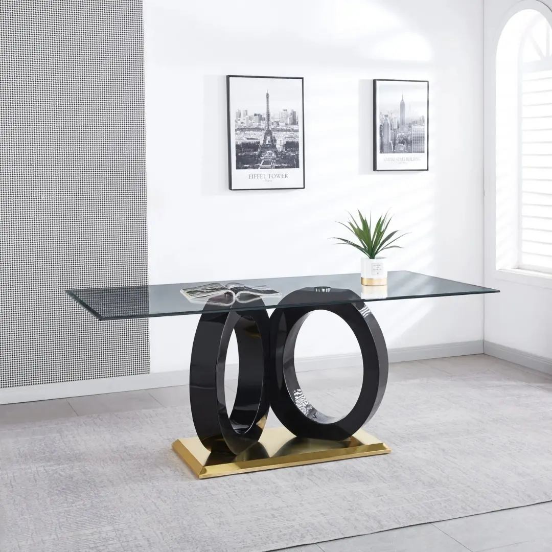 The standout feature of this dining table is its sleek, 10mm thick grey tempered glass top — resilient, scratch-resistant, and visually striking. Its smoky, semi-reflective surface creates an air of depth and lightness, making it the perfect centrepiece for luxury interiors that value both form and utility.