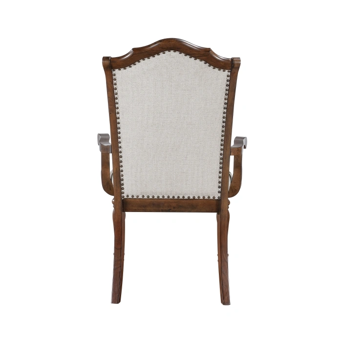 With a graceful profile inspired by refined dining aesthetics, this chair pairs beautifully with a variety of table styles. Its structured wood frame with a rich cherry finish anchors the piece in classic elegance, while nailhead trim detailing adds subtle sophistication to your décor.
