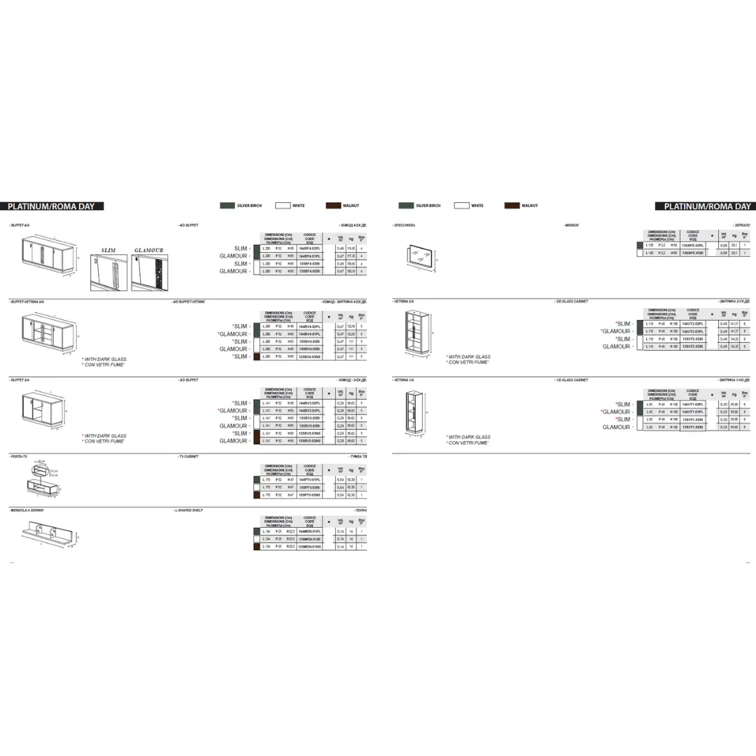 | Roma 4-Door Buffet - Vitrine | 79″W X 20″D X 33″H |