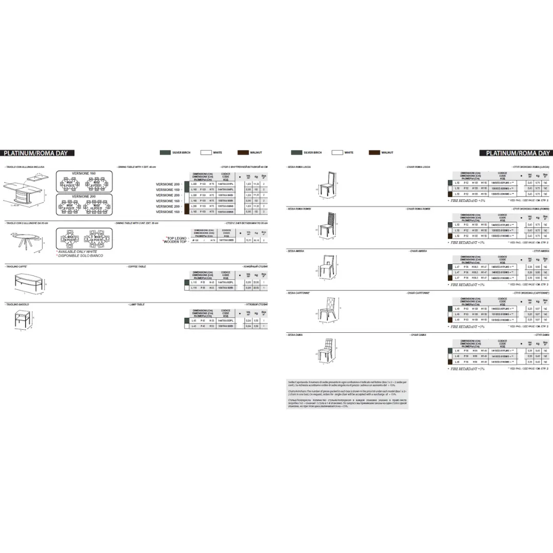 | Roma Dining Table w/1 Extension (18") | 79/97″W X 40.5″D X 29.5″H |
