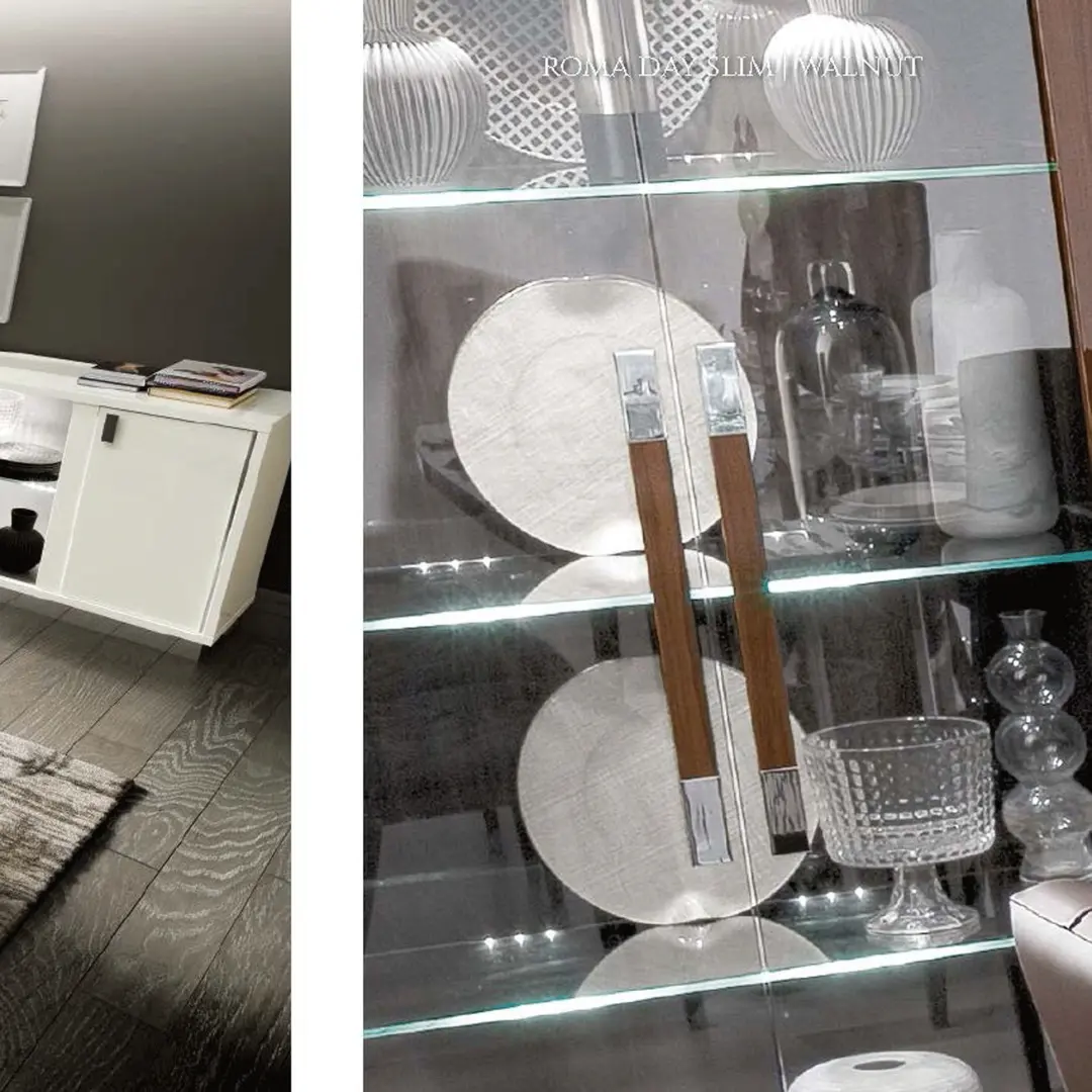 - Modern Accents: Accented with smoke grey glass panels that enhance the palette and balance the lacquered finish beautifully.