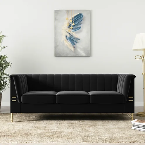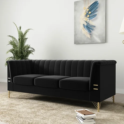 the ultimate artisan living room furniture designed to bring elegance and comfort to your space. Wrapped in plush velvet made from 100% polyester, these sofas offer a soft yet durable seating experience that exudes sophistication. Built on a sturdy solid wood structure and enhanced with high-density foam and pocket springs, they provide exceptional support and long-lasting comfort. The sleek iron legs with a radiant gold finish add a touch of modern glamour, making these sofas a statement piece in any living room. Elevate your home with this exquisitely crafted artisan furniture, where style meets superior craftsmanship.