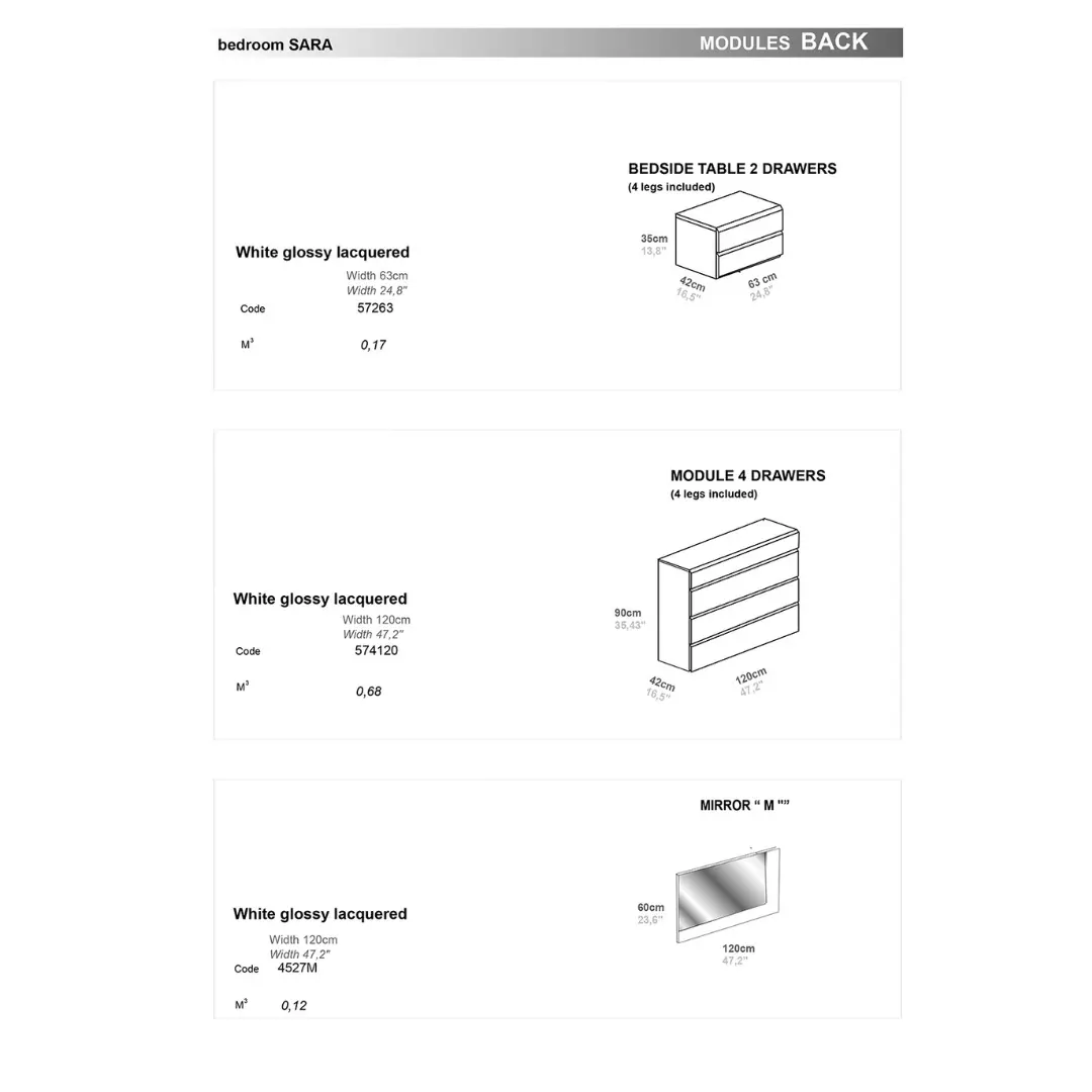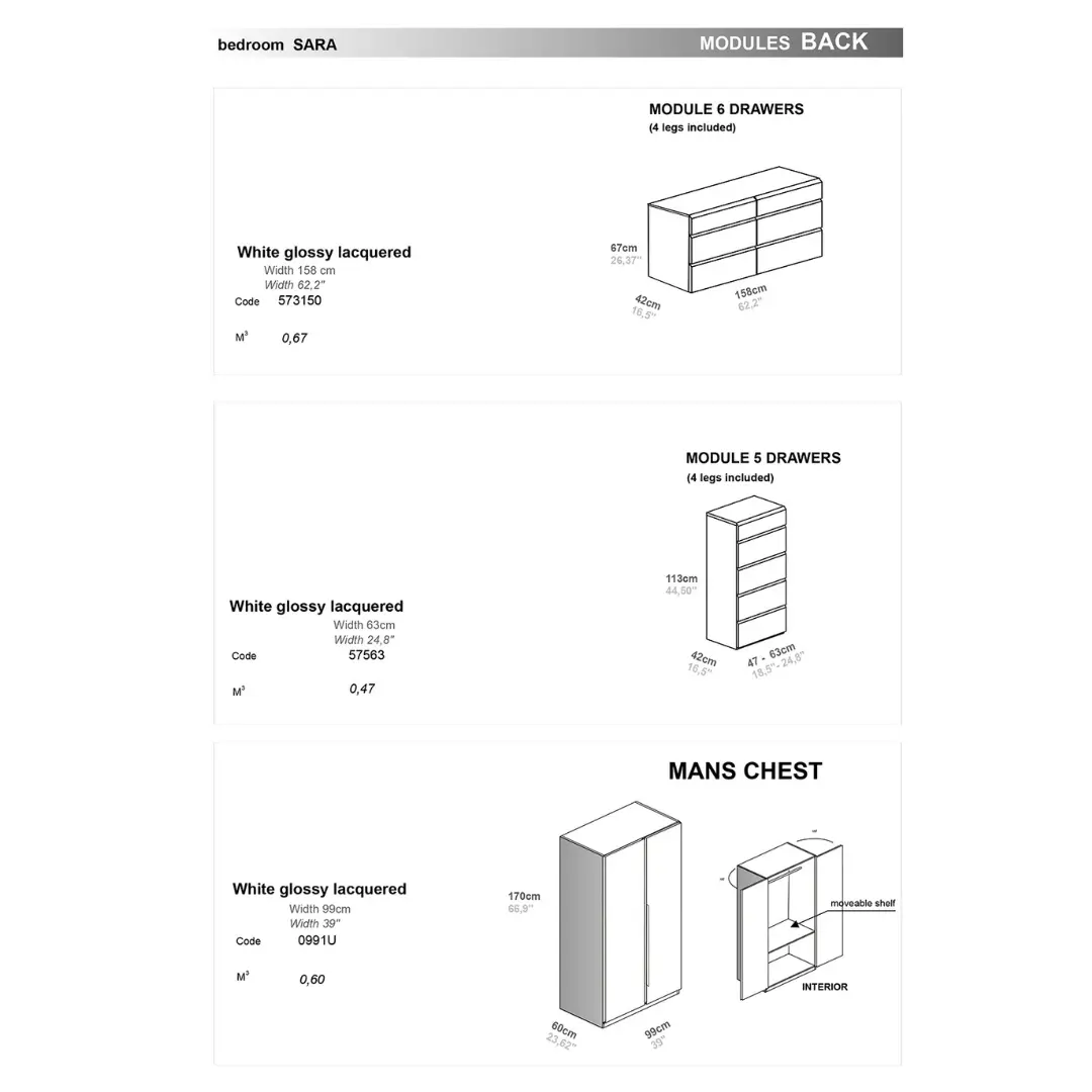 Crafted to suit your individual space and storage needs, the High Gloss Lacquer Sara Bedroom Set p6970 is available in modular options. The standard set includes a bed, two nightstands, a dresser, and a matching mirror. For expanded storage, opt to add the double dresser, 5-drawer chest, or stylish 2- and 4-door wardrobes—all perfectly matching the collection’s clean white finish.