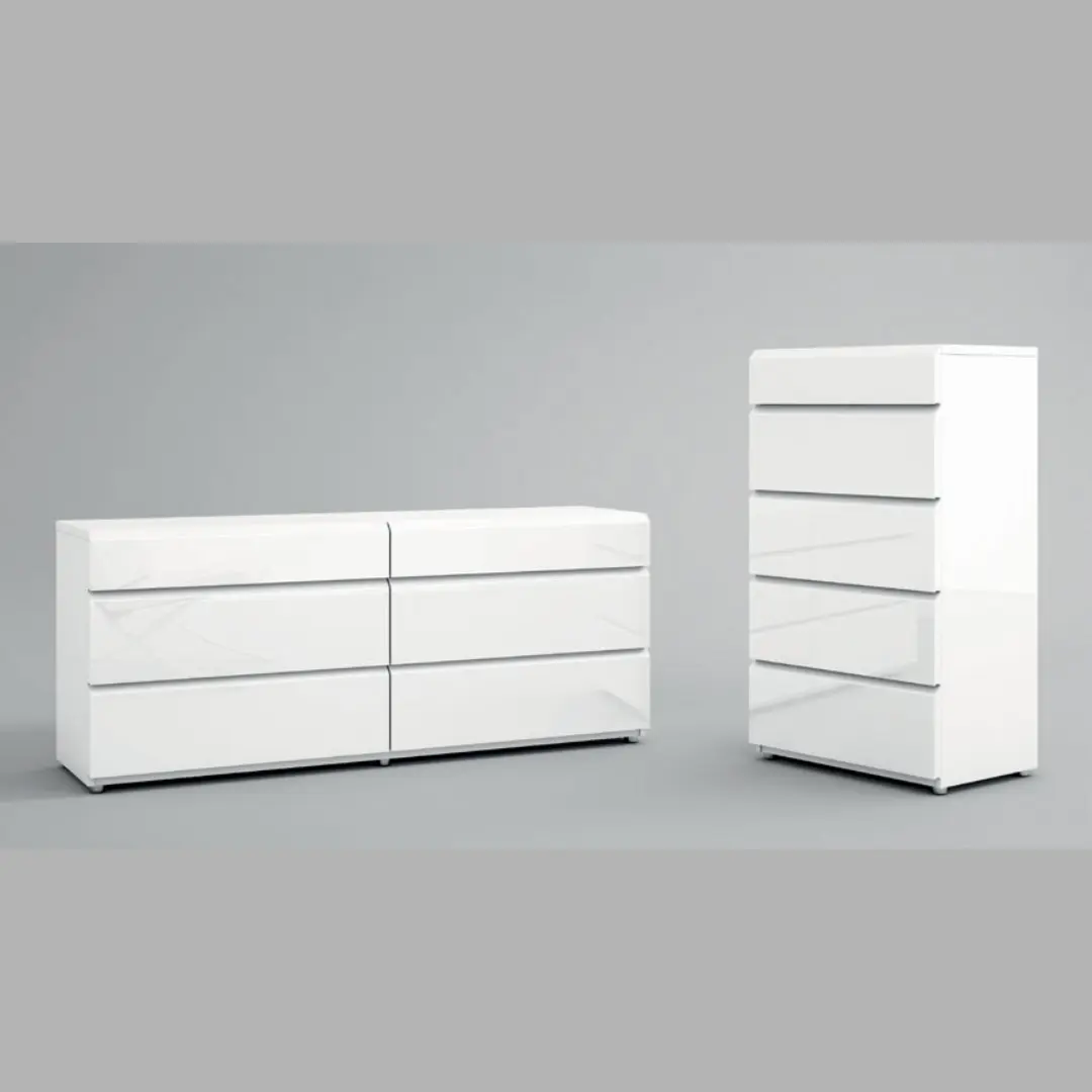 Transform your sleeping space into a statement of modern luxury with the High Gloss Lacquer Sara Bedroom Set p6970 By ESF Furniture. Designed with precision and elegance, this bedroom collection offers a harmonious blend of sleek European craftsmanship and functional contemporary design. A pristine white high gloss lacquer finish gives the entire set a luminous, airy appeal—perfect for creating a clean, spacious feel in any room.