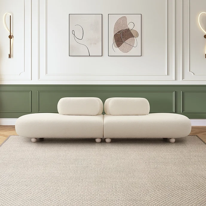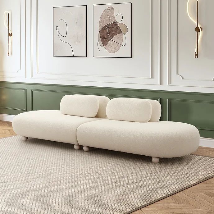 Make a bold statement with our white boucle curved sofa an artisan sofa designed to bring modern elegance and luxurious comfort to your living space. Upholstered in soft, textured white boucle made from 100% polyester, this modular sofa combines durability with a contemporary aesthetic. The gently curved design adds a touch of sophistication and creates a cozy, inviting ambiance. Built with LVL (Laminated Veneer Lumber) for superior strength and featuring high-density foam cushions, it ensures lasting support and relaxation. The sturdy birch wood legs provide a natural finish, enhancing its chic appeal. Perfect for creating a refined and comfortable living area, this artisan sofa is a masterpiece of design and functionality.