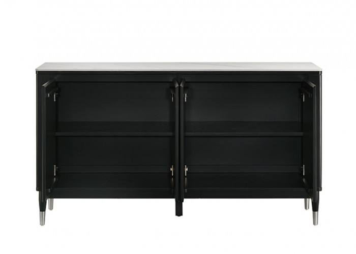 The Maidstone Server brings modern sophistication and practical storage to your dining room. Designed with a sleek sintered stone top for durability and a bold black/white finish, this piece blends style and utility seamlessly. The reeded panel detailing adds a textured, designer touch, while the arrow-style legs echo the architectural elegance of the Maidstone collection.