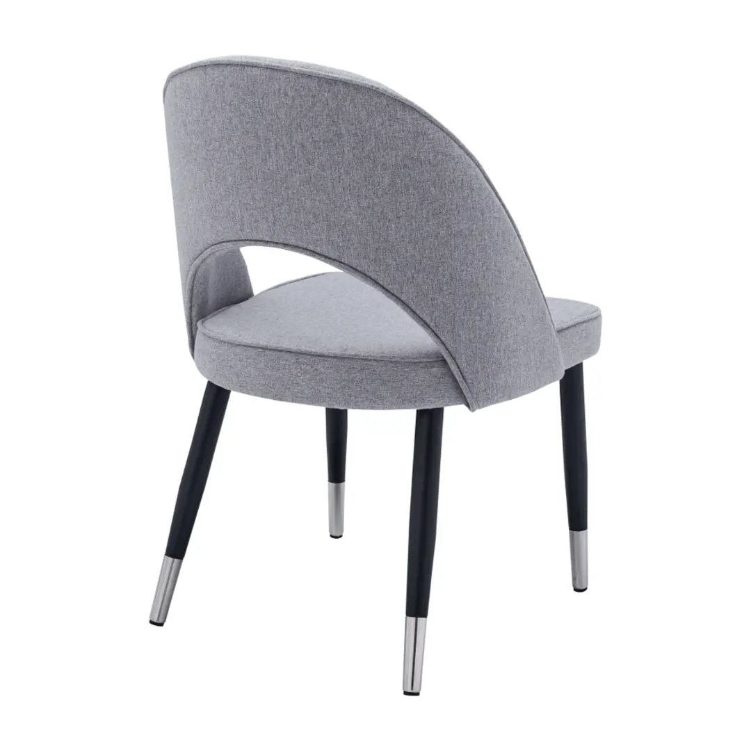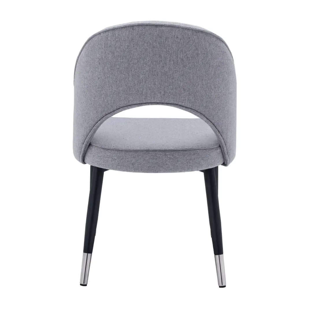 - Dining Chairs: Upholstered in premium fabric with black-painted metal legs and stainless steel trim to harmonize with the table’s modern structure.