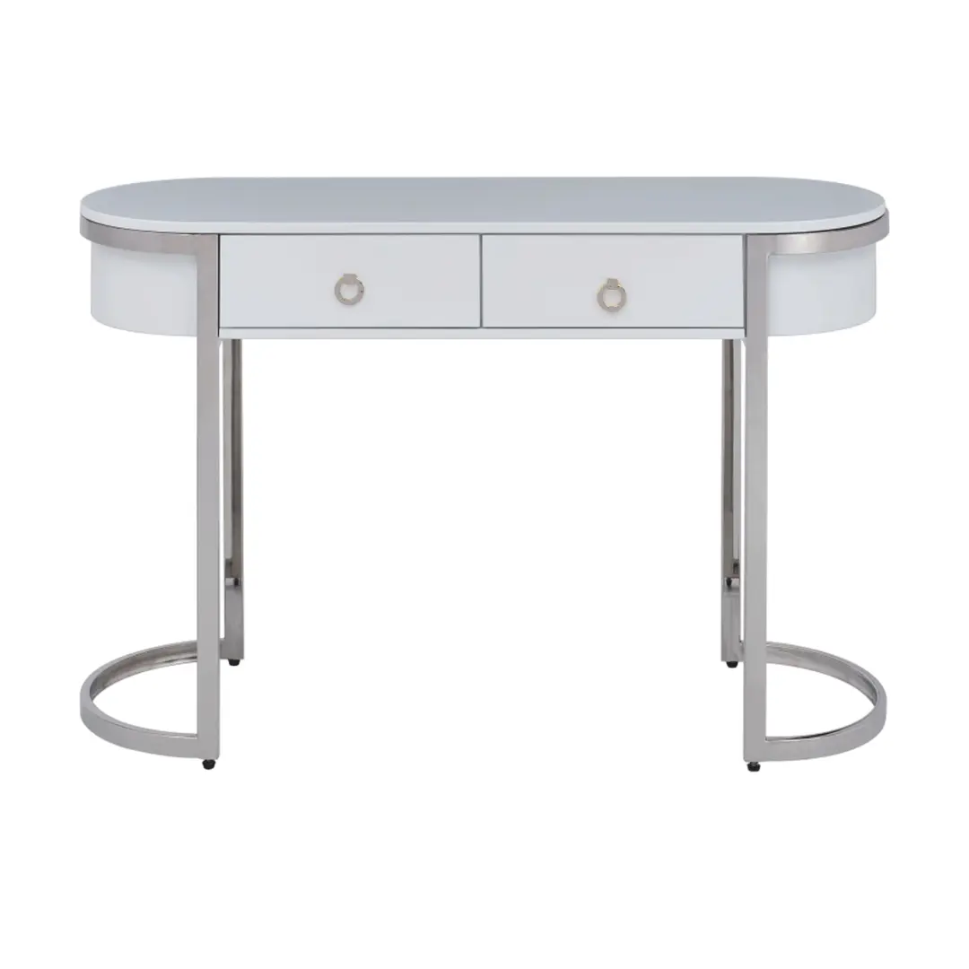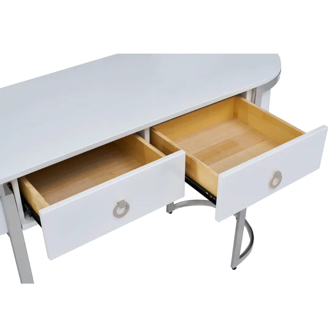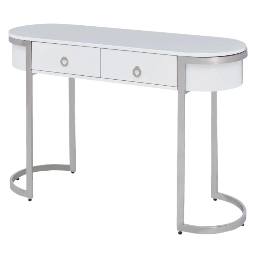 - Buffet Cabinet: White High Gloss Finish, Stainless Steel Base