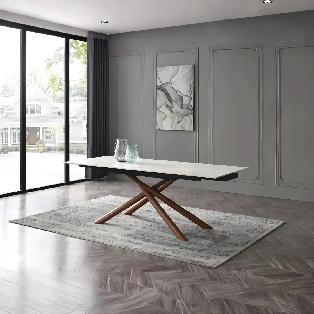 - Tabletop & Extension: Durable 12mm ceramic with a marble-inspired finish for elegance and resilience.