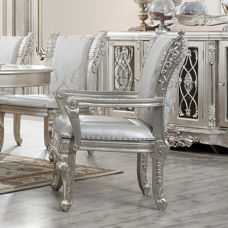 Beneath its ornamental beauty, the Silver Gray Arm Chair HD-5800GR offers real-world functionality. Sized to fit comfortably in intimate spaces without sacrificing style or comfort, it’s a practical update for guest rooms, dressing areas, and reading corners.
