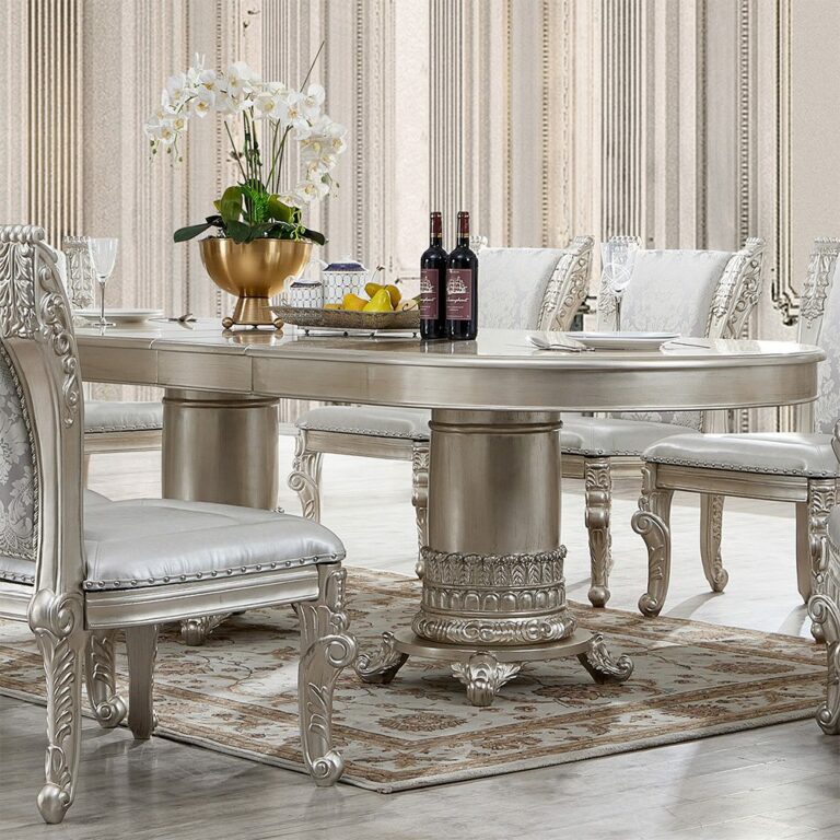 The Silver Gray Dining Table HD-5800GR by Homey Design embodies timeless sophistication and functional versatility, making it a standout piece for any upscale dining space. Crafted with meticulous attention to detail, this luxury extendable dining table features a classic European aesthetic wrapped in a stately antique silver gray finish—an ideal solution for homeowners and interior designers seeking refined grandeur with everyday practicality.