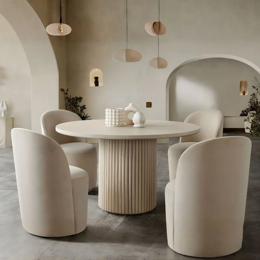 What truly sets this round pedestal dining table apart is its striking fluted pedestal base. Carefully carved vertical grooves add depth and visual movement, transforming the base into a statement design element.