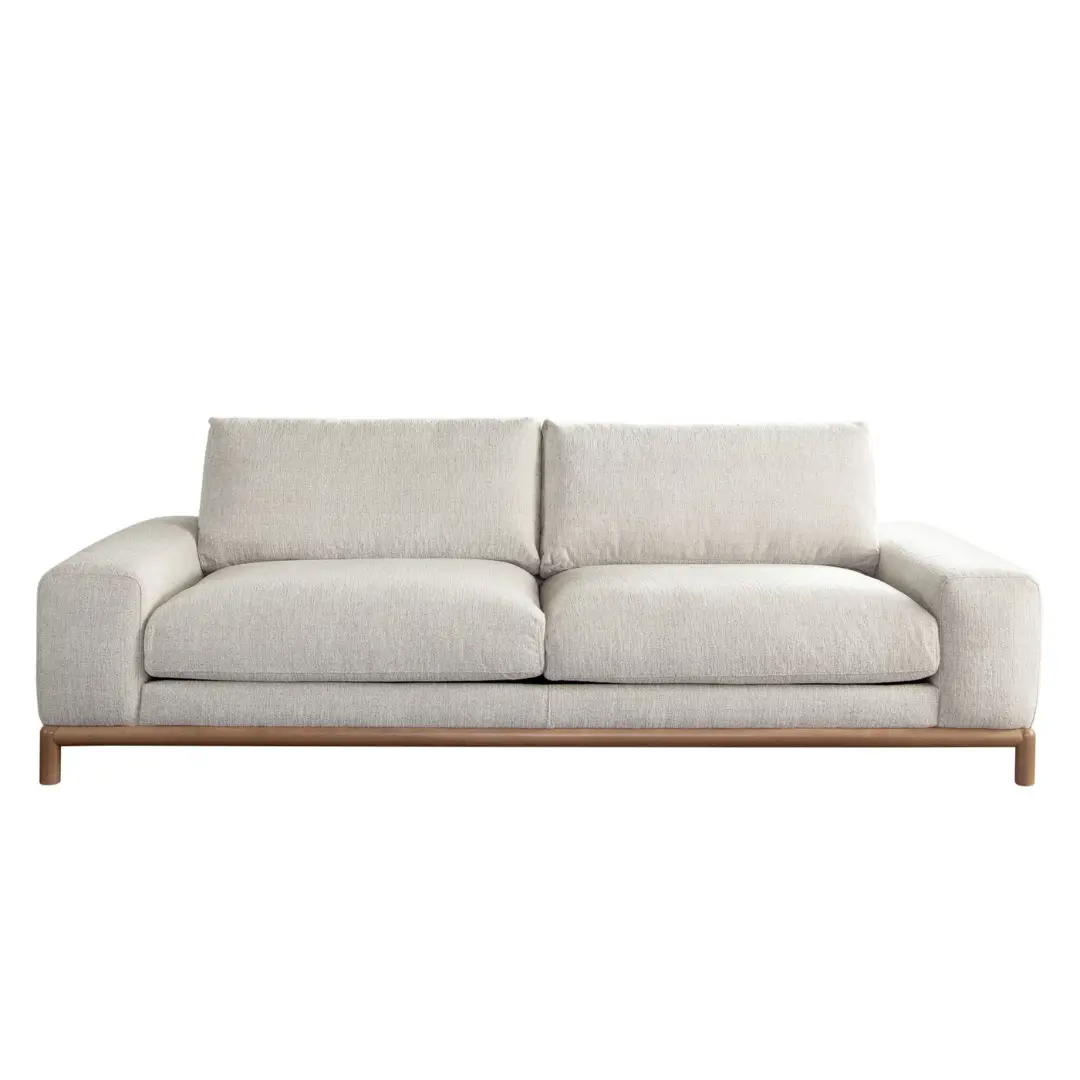 With square arms, loose cushions, and elegant wood detailing, this sofa delivers the balance today’s homeowners look for: comfort, durability, and timeless design.