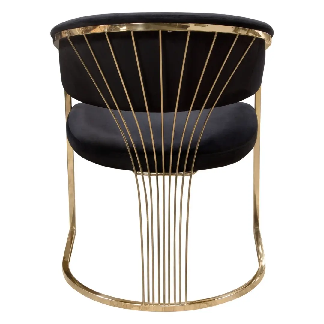 This chair isn’t just about comfort—it’s a statement piece. The polished gold metal frame adds a modern, luxurious touch to your dining area, reflecting light beautifully while maintaining stability. Its metal construction ensures that it’s both sturdy and long-lasting.