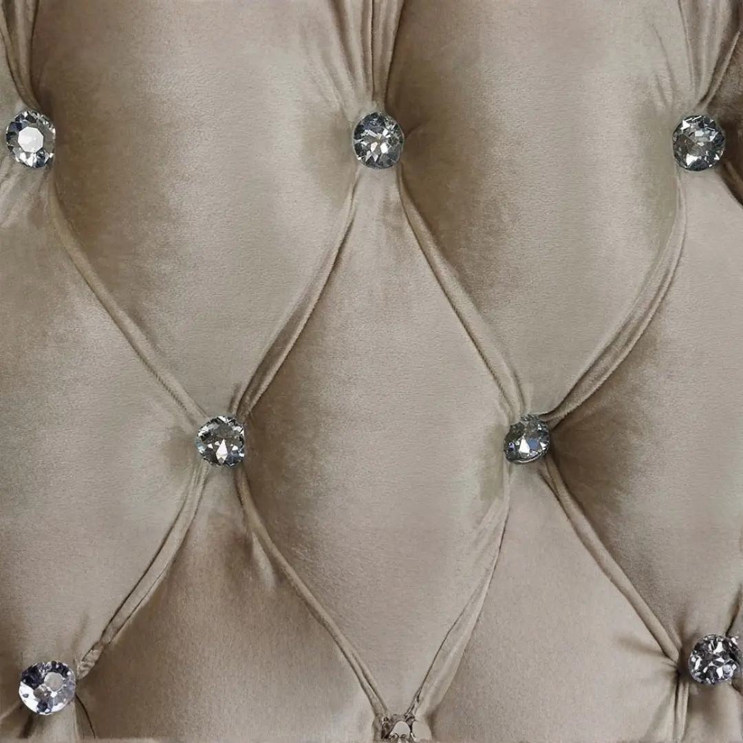 Add a touch of regal sophistication to your living room with the Gold French Armchair from the Sorina collection. Featuring a luxurious antique gold frame and exquisite crystal-like tufting, this armchair delivers both comfort and timeless elegance, making it an ideal accent piece for luxury interiors.