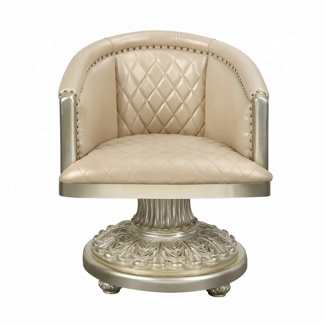 Bring an air of regal sophistication to your dining space with the Leather & Antique Gold Finish Sorina Arm Chair by ACME — an exquisite statement piece designed for lovers of timeless luxury and classical grandeur. Crafted with precision and elegance, this arm chair complements the opulent Sorina dining table, creating a powerful dining room ensemble ideal for sophisticated entertaining or upscale daily dining.