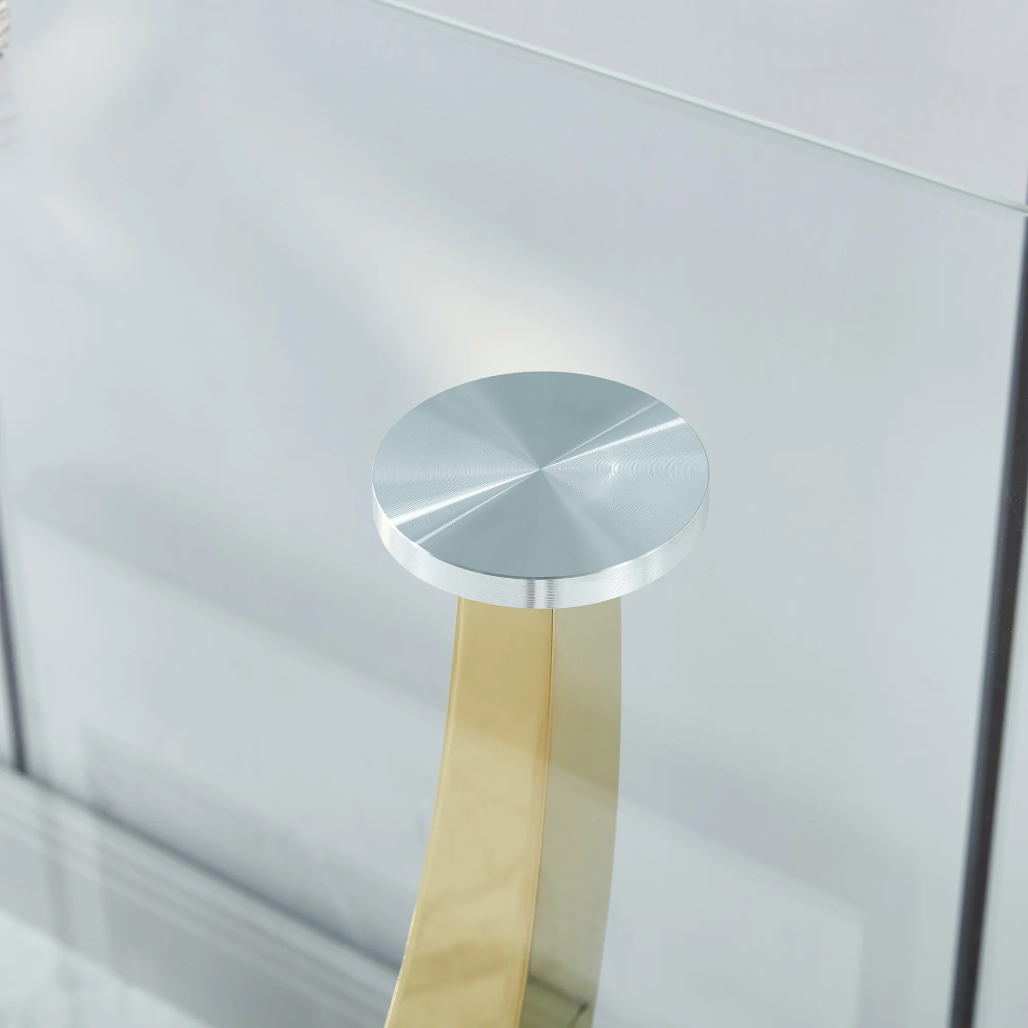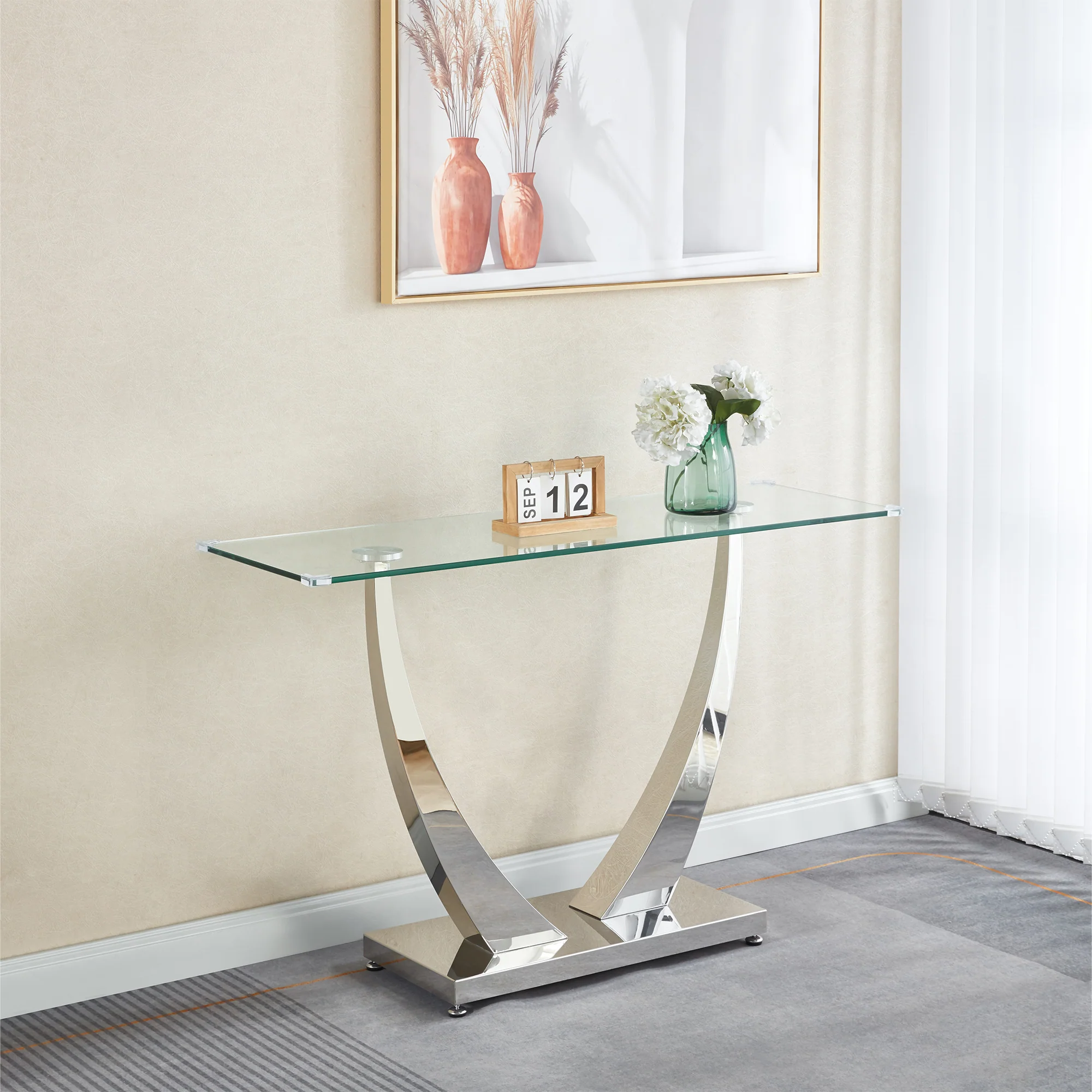 An artisan table is more than just furniture—it’s a statement of elegance and craftsmanship, designed to enhance any modern space with a touch of luxury. This stunning console table features a 10mm tempered glass top, offering a sleek, transparent surface that adds depth and sophistication to your home. The base, expertly crafted from 201 stainless steel, ensures durability while exuding contemporary charm. Available in gold or silver mirrored finishes, this artisan piece reflects light beautifully, creating an airy and refined atmosphere. Whether placed in an entryway, living room, or hallway, this console table is the perfect blend of functionality and artistry, making it an exquisite addition to any interior.
