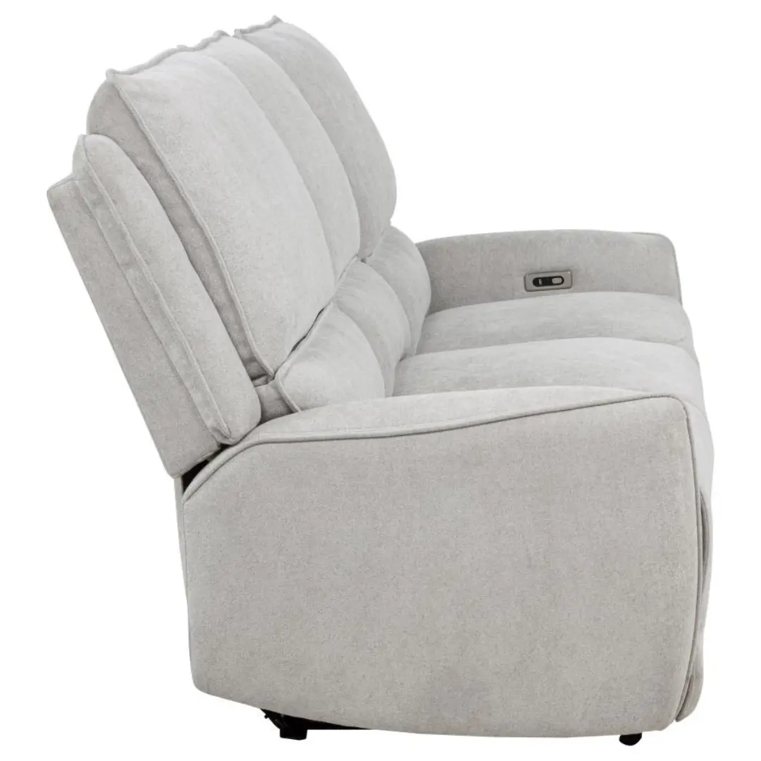 The power recliner sofa is designed to elevate everyday relaxation with a perfect balance of modern style, comfort, and smart functionality. Wrapped in soft dove grey chenille upholstery, this piece brings a refined monochromatic elegance that blends seamlessly into contemporary and transitional living rooms. Its plush cushioning and sculpted silhouette create an inviting seating experience that feels both supportive and indulgent.