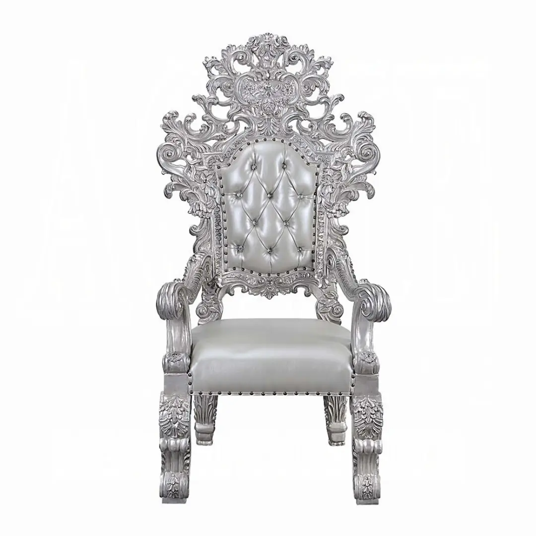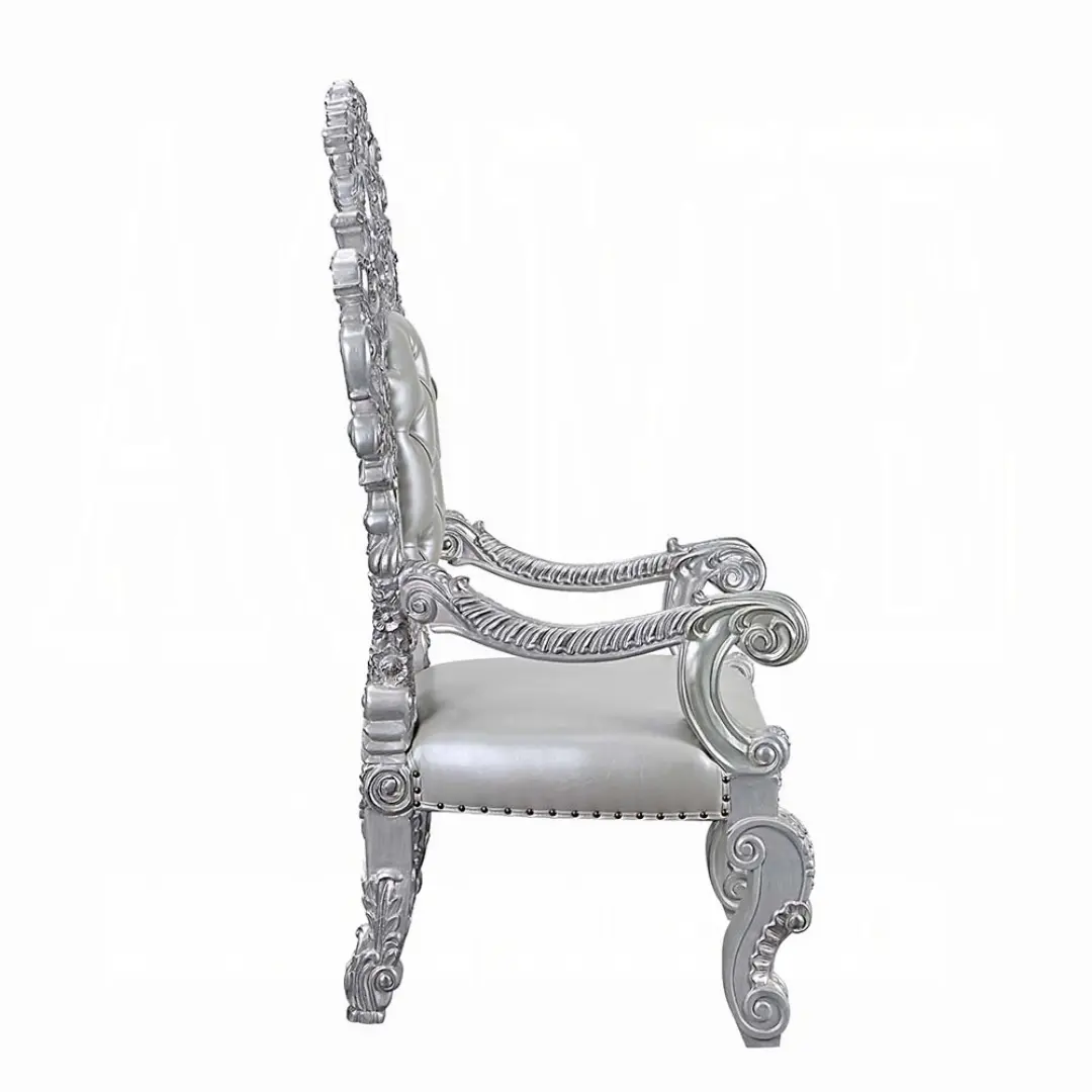 Transform your dining space with the regal sophistication of the Valkyrie Leather Arm Chair by ACME. Designed as part of ACME’s luxurious Valkyrie Dining Room Collection, this arm chair showcases an exquisite blend of traditional detail and transitional styling — the ideal statement piece for upscale interiors that demand presence, comfort, and artistic craftsmanship.