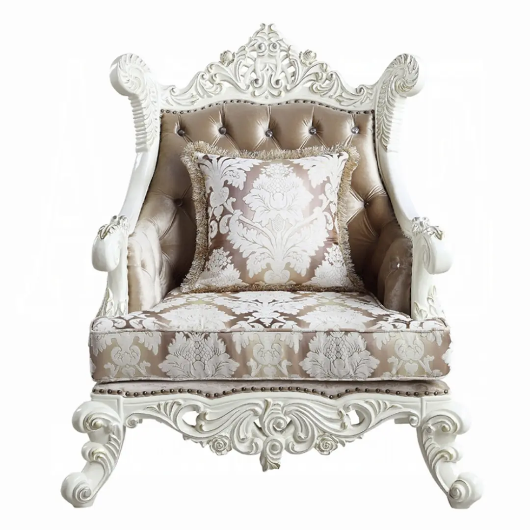 Make a bold statement in your living space with the Vanaheim Fabric Living Chair With Pillow by ACME — a masterful blend of classic European elegance and plush contemporary comfort. Designed for homes that appreciate the beauty of ornate craftsmanship and enduring materials, this luxurious accent chair transforms any room into a sophisticated setting.