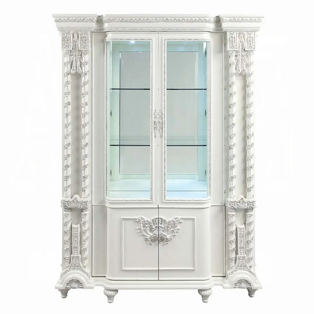 Enhance your dining space with the beautifully crafted Antique White Finish Vanaheim Curio by ACME – a refined showcase of classical charm, lavish detail, and functional sophistication. Designed as part of the opulent Vanaheim Dining Room Collection, this curio cabinet combines ornamental style with practical storage, making it an essential piece for collectors and luxury design connoisseurs alike.