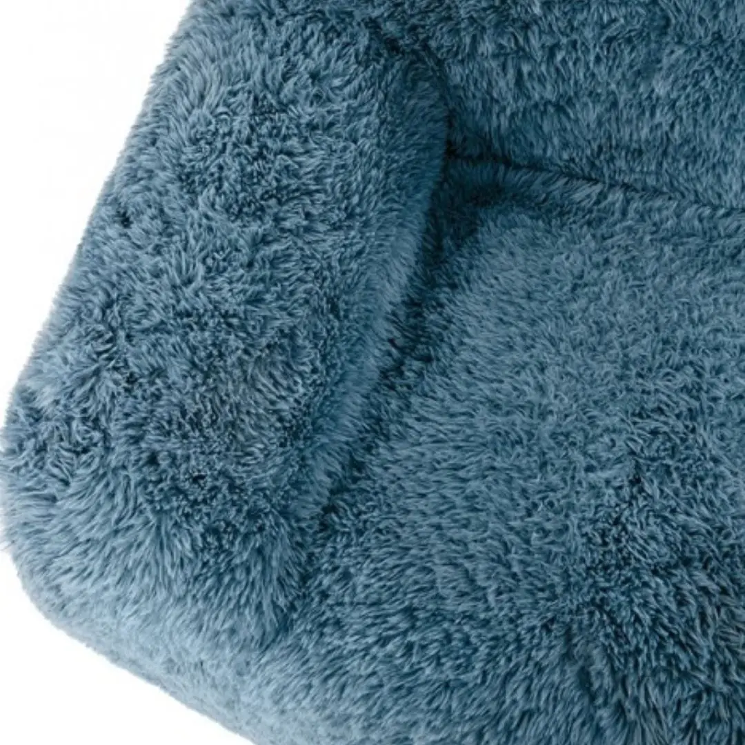 The defining feature of this blue accent chair is its plush, long-pile faux fur. The shaggy texture not only enhances the chair’s aesthetic appeal but also provides an incredibly soft, tactile experience.