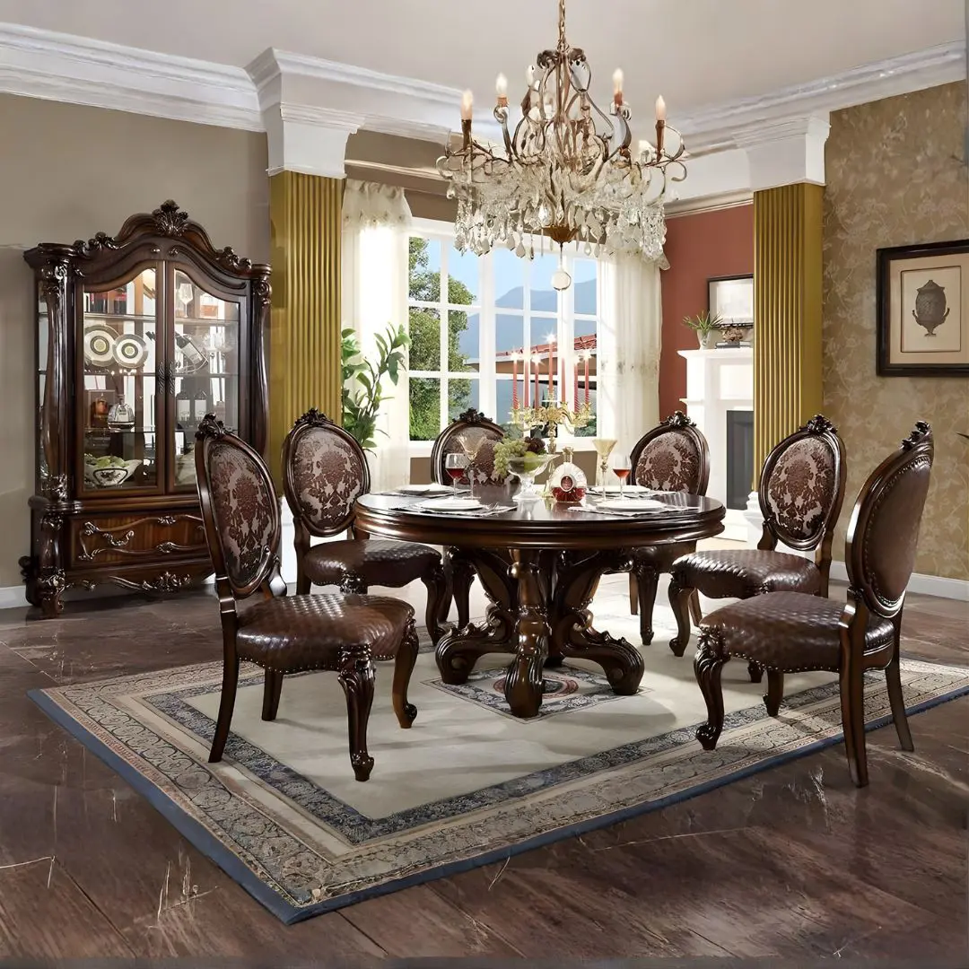 Bring timeless European elegance into your dining room with the Versailles Round Pedestal Dining Table in Cherry Finish DN01391 by ACME. Designed with classical sophistication and hand-crafted detailing, this centerpiece combines opulence with enduring craftsmanship — a true investment in both form and function for your luxury interior.