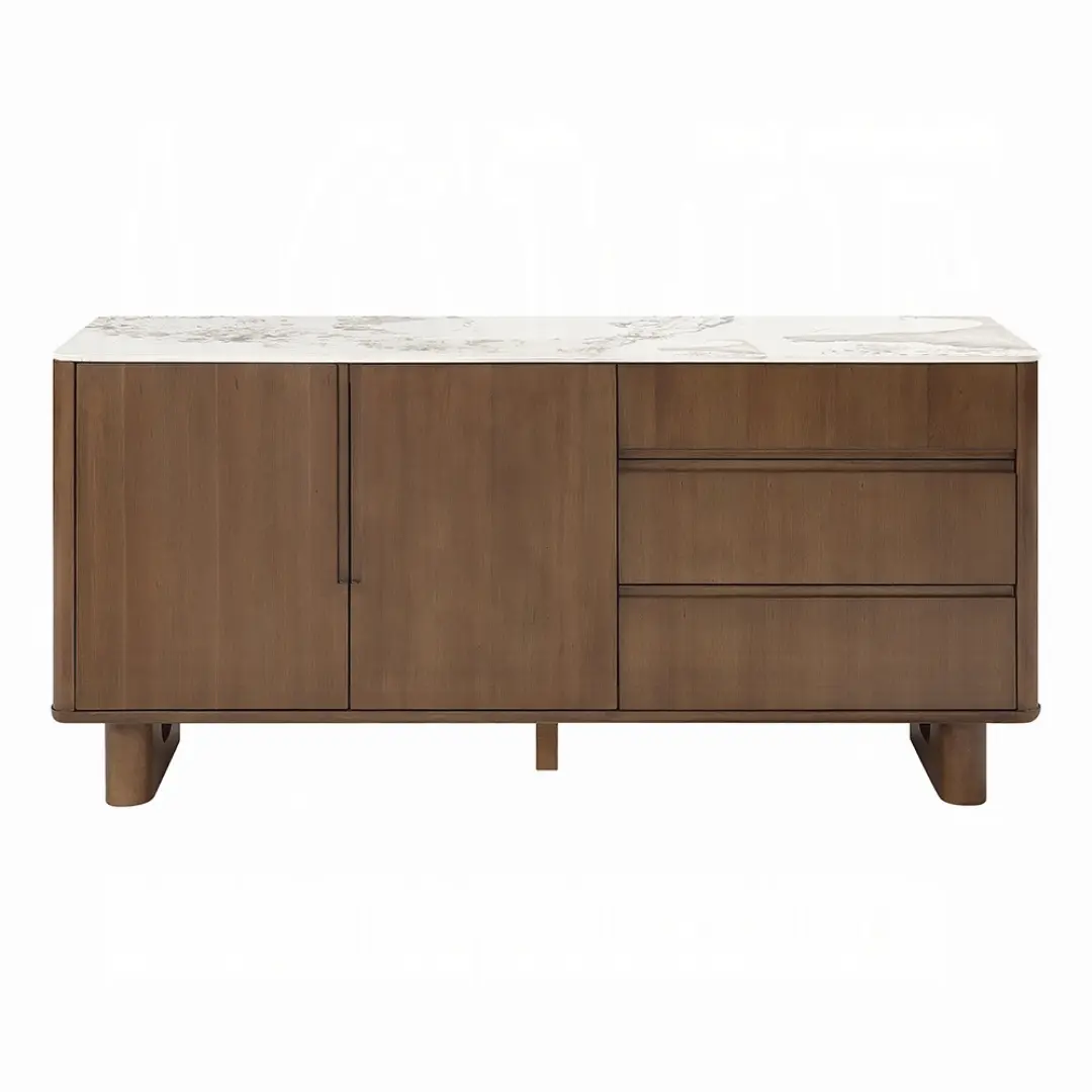 The walnut buffet cabinet is a perfect combination of style, storage, and practicality. The Harvey Walnut Buffet Cabinet with Ceramic Top offers a sleek modern design that elevates any dining space. Its durable ceramic top adds a refined touch while providing a surface that is easy to clean and maintain.