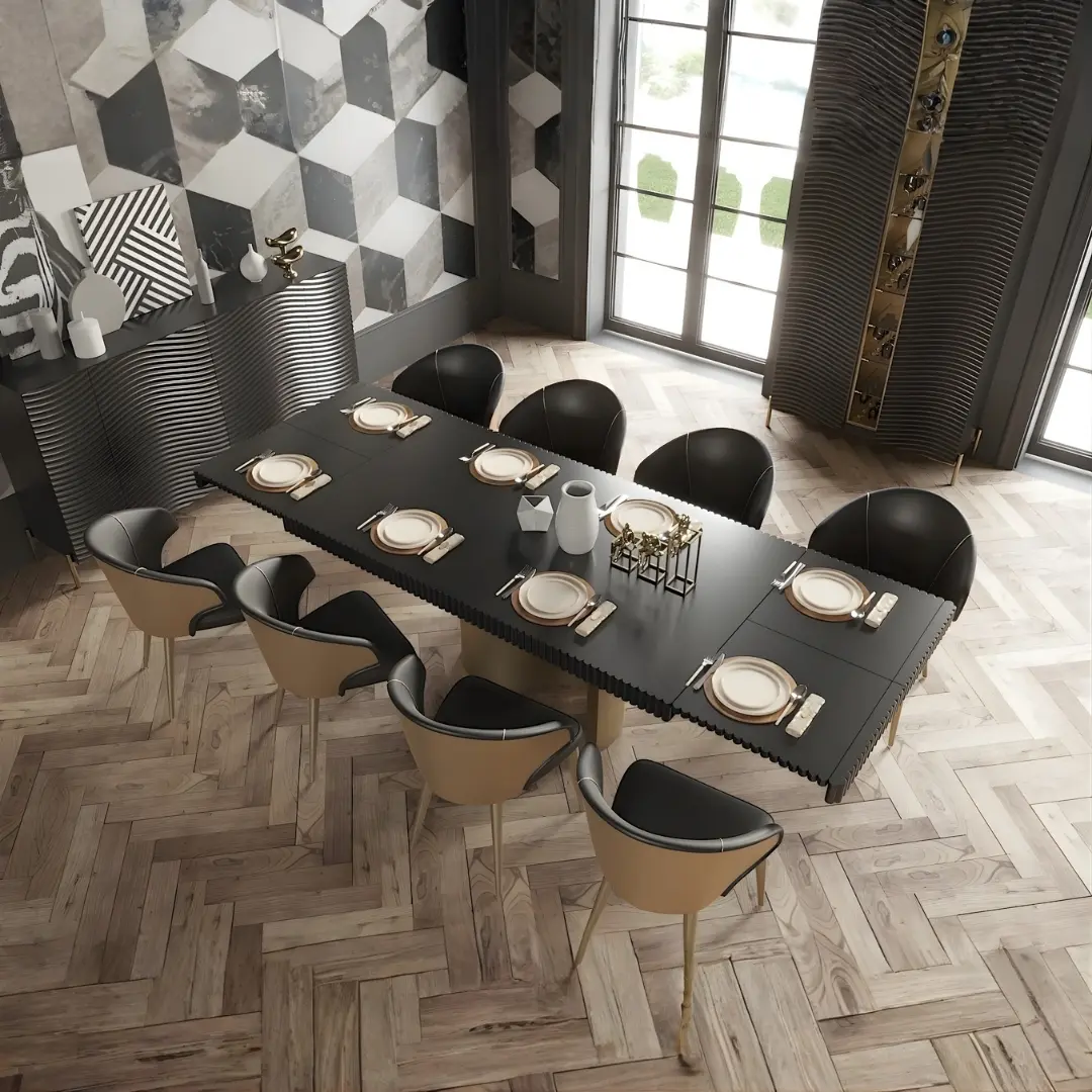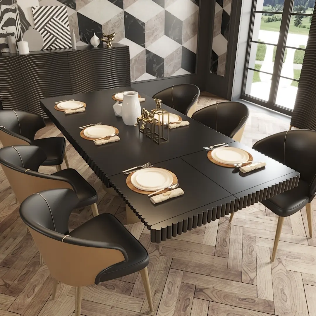 - Extendable Table: Hidden extensions under the top surface allow you to go from intimate dinners to full gatherings effortlessly.